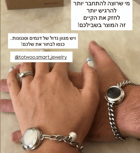 עיצבנו את אפליקציית Totwoo מתוך מחשבה על שניכם. אפליקציה זו משמשת כמרחב מקוון ייחודי שבו אתה יכול לשפר את החוויה שלך עם המוצרים שלנו. דרך האפליקציה יש לך את היכולת להעלות מדיה לתכשיטים שלך, להקליט הודעות אישיות לשיתוף ואפילו לשלוח הודעות מפתיעות. אפליקציית Totwoo זהו ביטוי של אהבה, המאפשר לך להראות לאהוביך עד כמה הם מיוחדים עבורך.