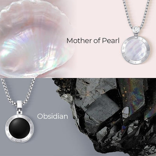 שרשרת זו, העשויה מאובסידיאן טבעי שנולד מאש געשית ועם הפנינה שנלקחה מהים, מגלמת גם עוצמה וגם שלווה - שני כוחות הקשורים יחד, כמו לבבות מסונכרנים.